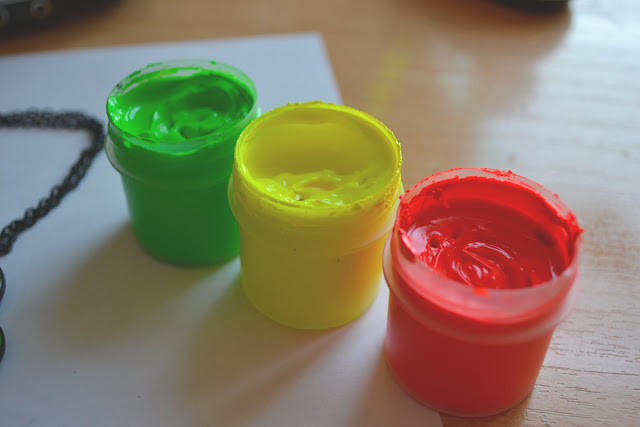 All you gonna need is: a rhinestone necklace (I used my old one), fluo acrylic paints and a paintbrush